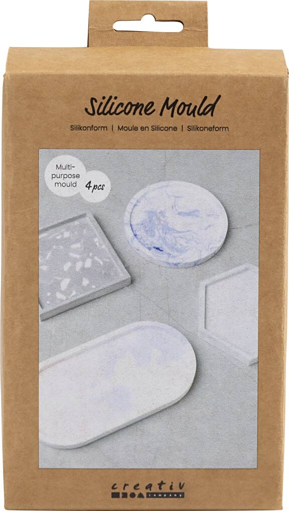 Silikoneform Til Beton Gips Sæbe Mm - Firkant Cirkel Hexagon Oval - 4 Stk.