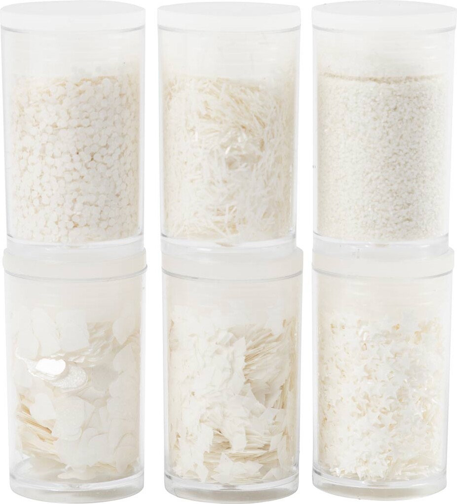 Bio-glimmer & Pailletter - Sølv - Hvid - 6x7ml