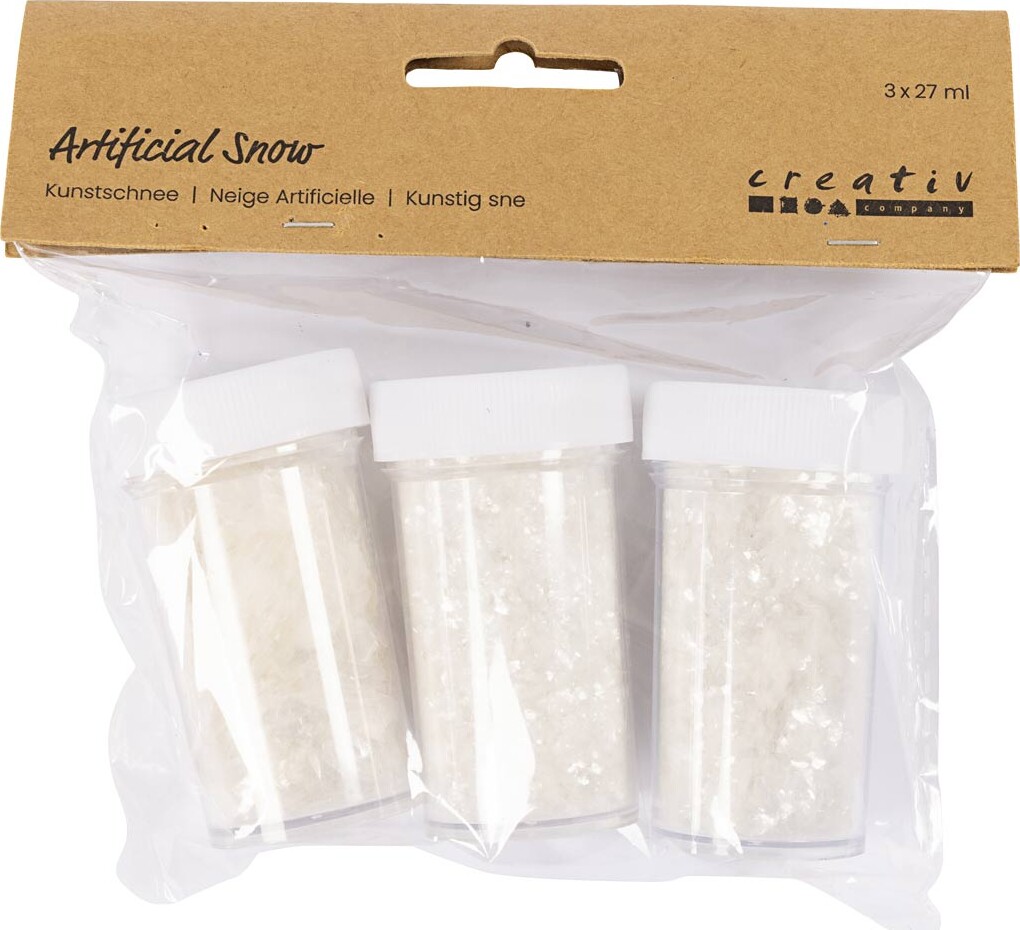 Kunstig sne er et must-have til julens kreative projekter. Drys den på nisselandskabet, pynt gaver...