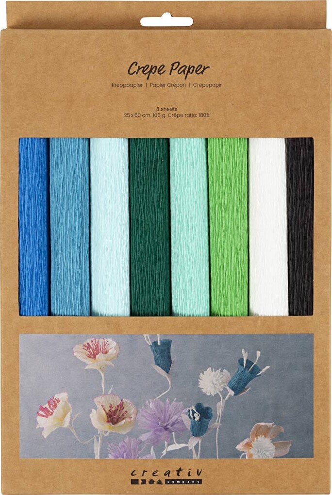 Crepepapir - 25x60 Cm - Stræk/crepe 180% - 105 G - Blå/grøn Harmoni