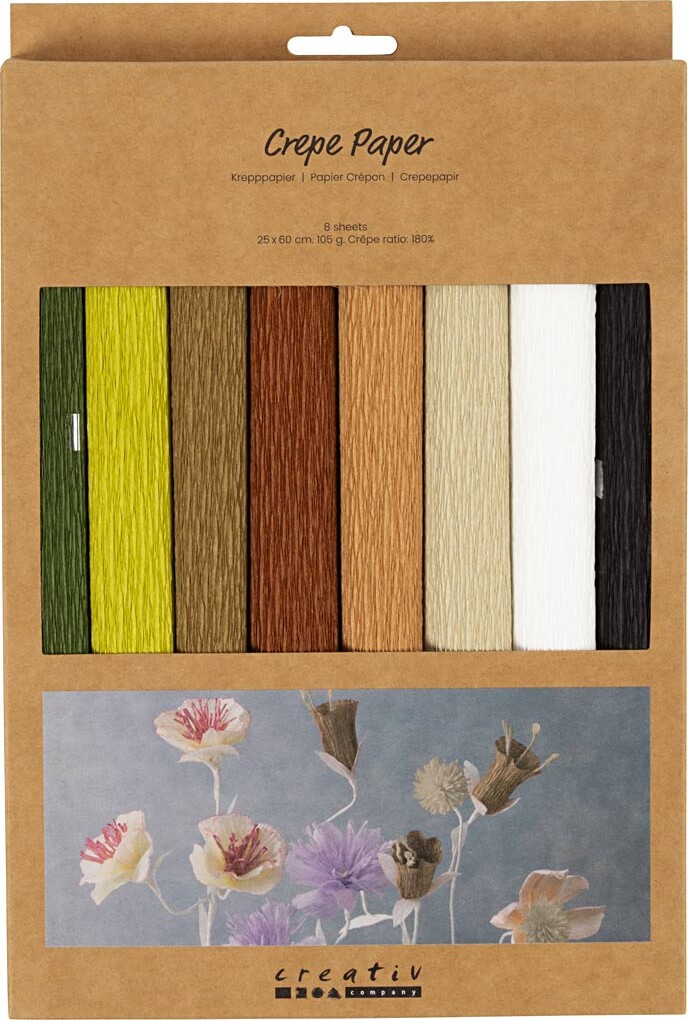 Crepepapir med en stręk-/crepeprocent på 180, som gųr det perfekt til at lave papirblomster af,...