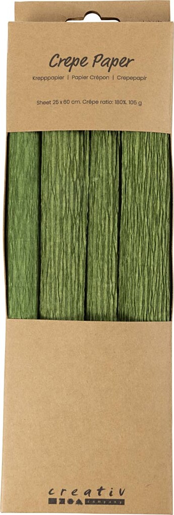 Crepepapir - 25x60 Cm - Stræk/crepe 180% - 105 G - Løvgrøn - 4ark