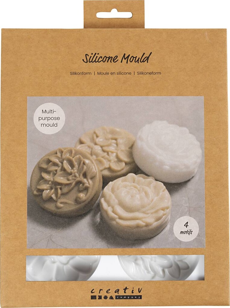 Silikoneform - Rund Med Blomstermotiv - L 6,8 Cm - B 2,3 Cm - 4stk.