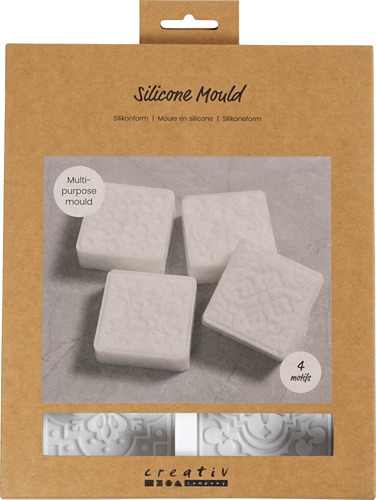 Silikoneform - Firkantet Med Grafisk Motiv - H 2,4 Cm - L 6,8 Cm - 4stk.