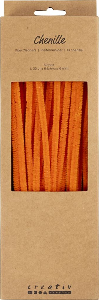 Chenille Piberensere - L 30 Cm - Tykkelse 6 Mm - Orange - 50 Stk.