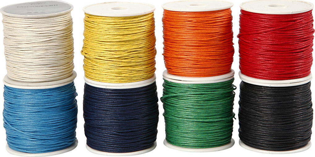 Dette assorterede sæt af bomuldssnor indeholder otte farver af vokset bomuldssnor med en tykkelse...