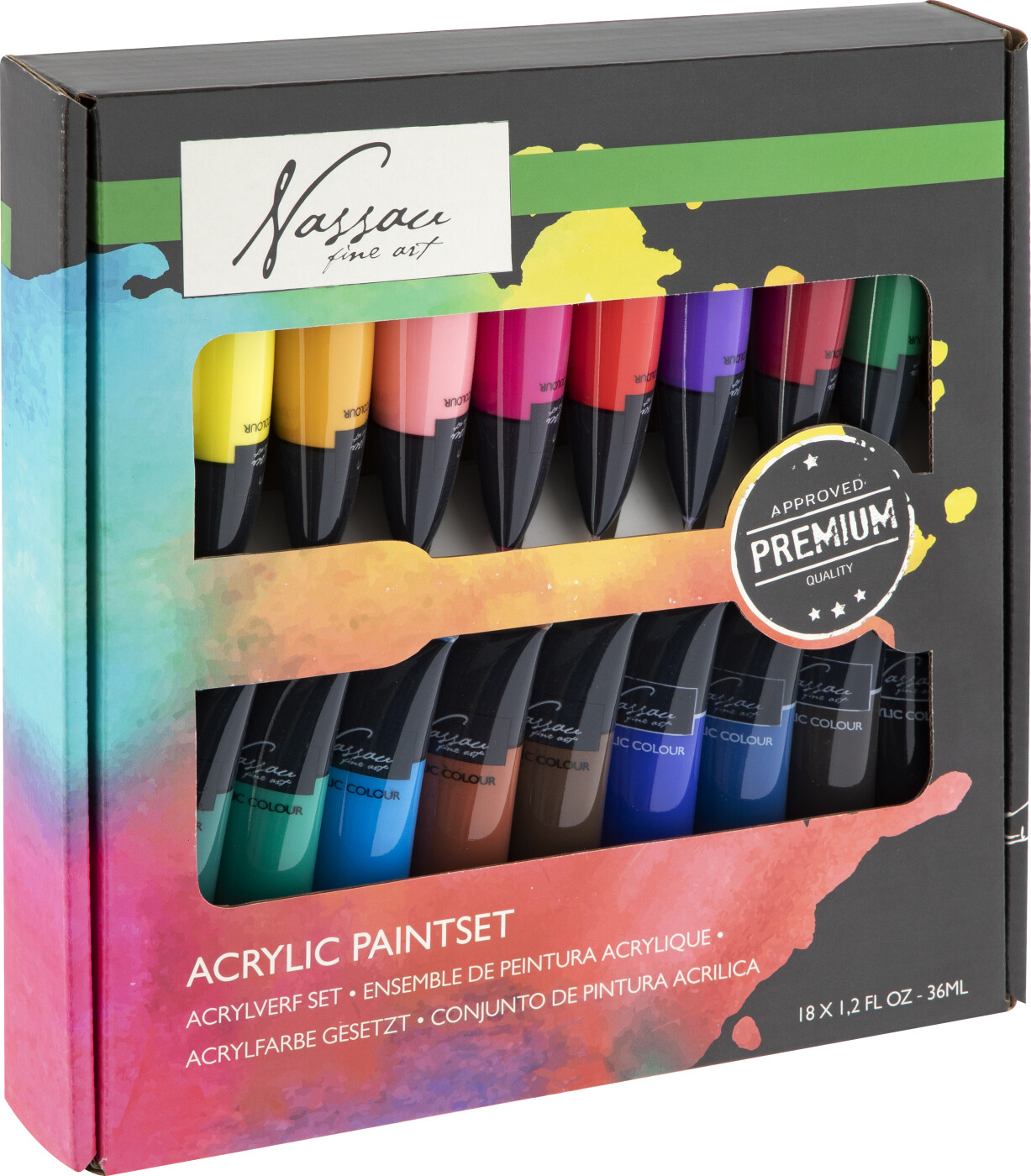 Nassau - Akrylmaling Inkl. Fluorescerende & Metallisk (18x 6 Ml)