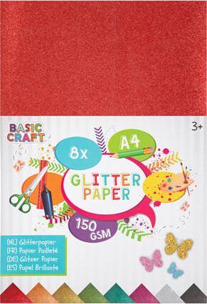 Glitterpapir A4 - 8 Ark, 150 Gram