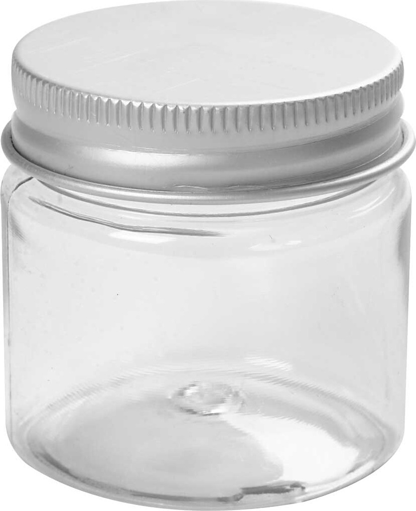 Hold orden med disse gennemsigtige plastdåser, der er udstyret med holdbare skruelåg af metal....
