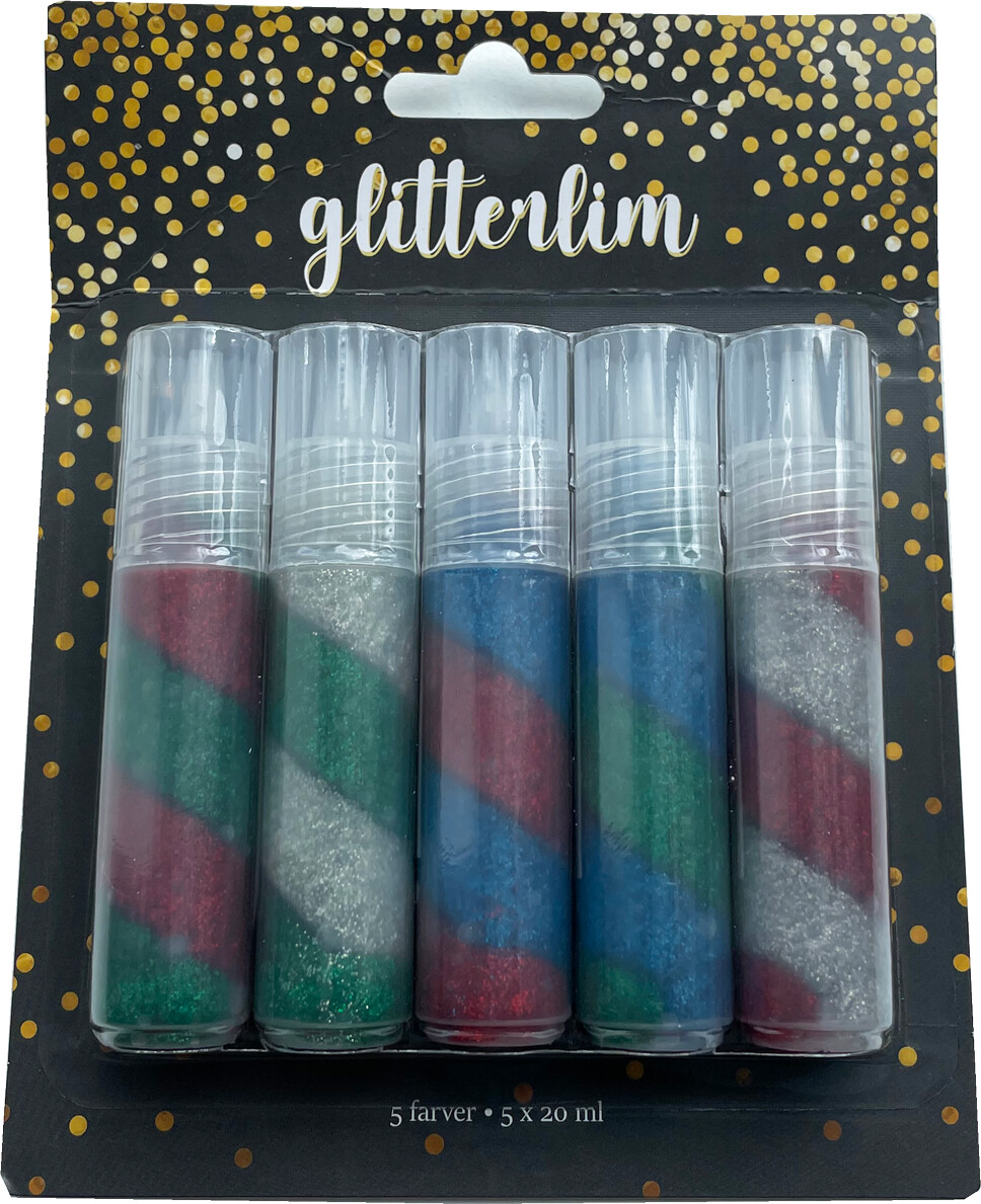 Glitterlim på tube m/stft. 5 fv. 20ml