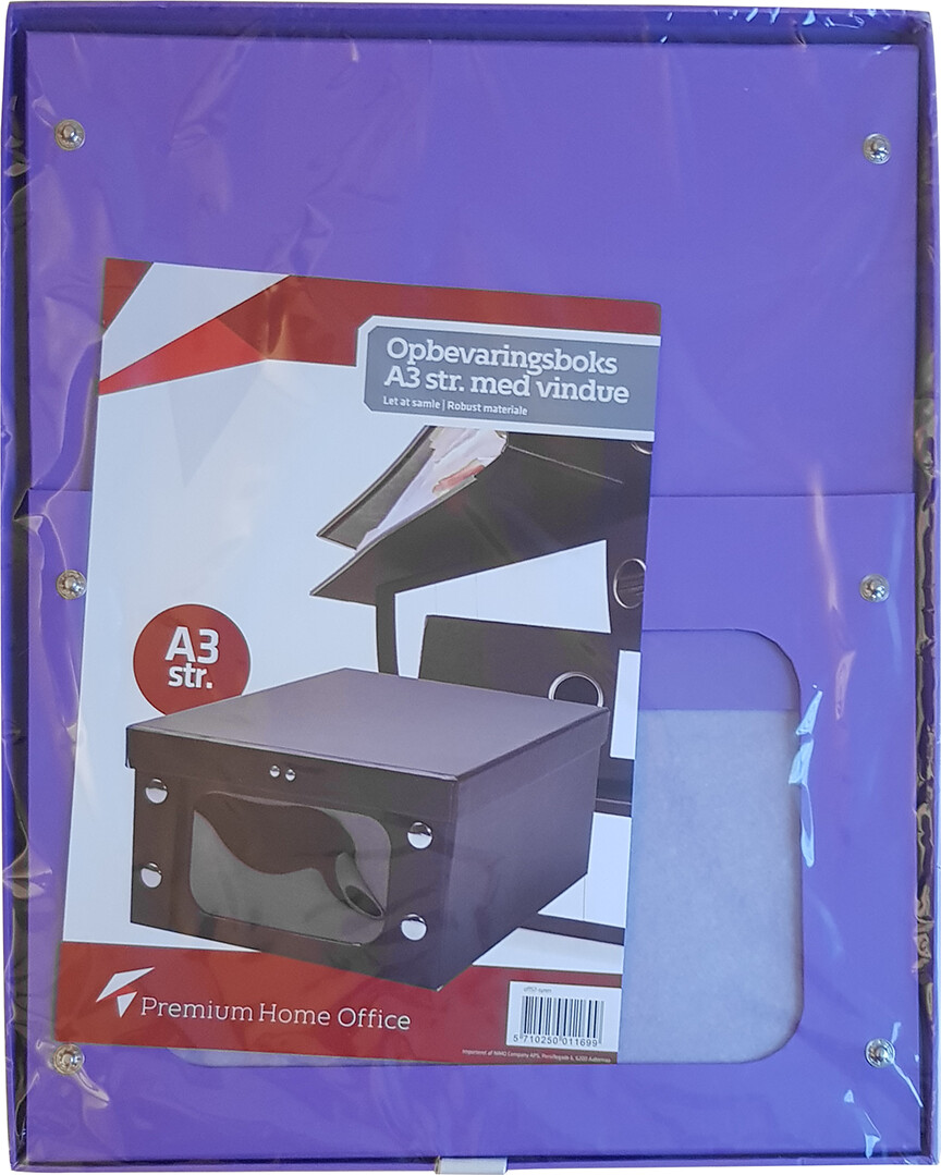 Robust opbevaringsæske fremstillet i kraftig karton, designet til effektiv organisering og...