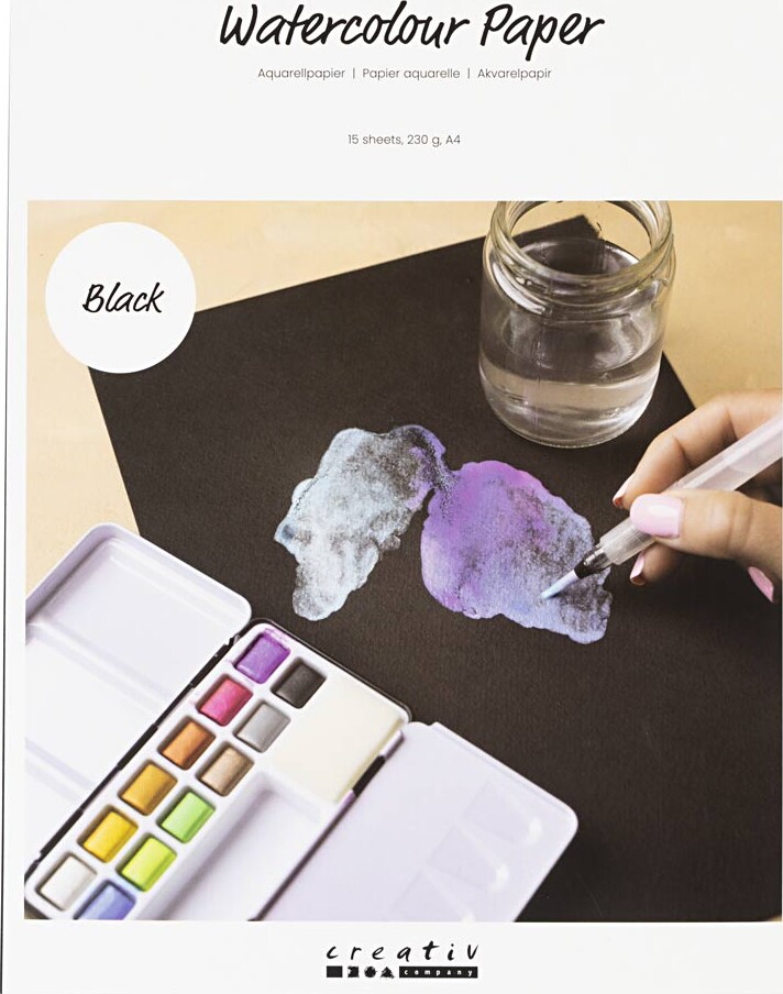 Akvarelpapir - A4 - Ark 210x297 Mm - 230 G - Sort - 15 Ark