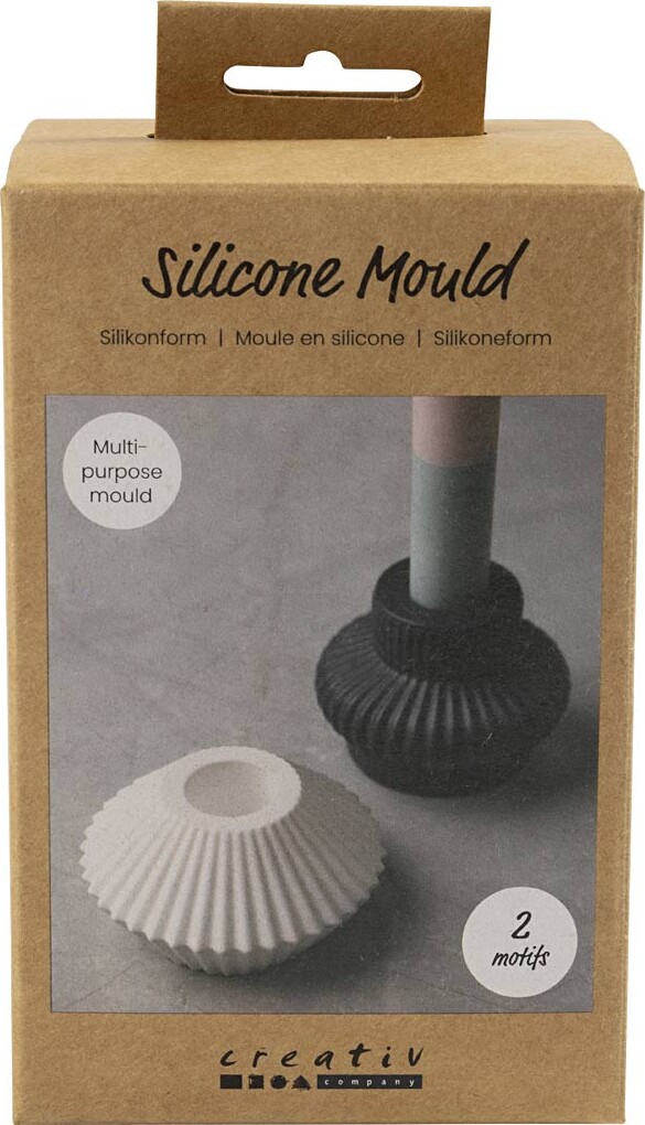 Denne elegante silikoneform gør det muligt at støbe dine egne rillede lysestager. Formen kommer med to forskellige størrelser og er lavet i blank transparent silikon.