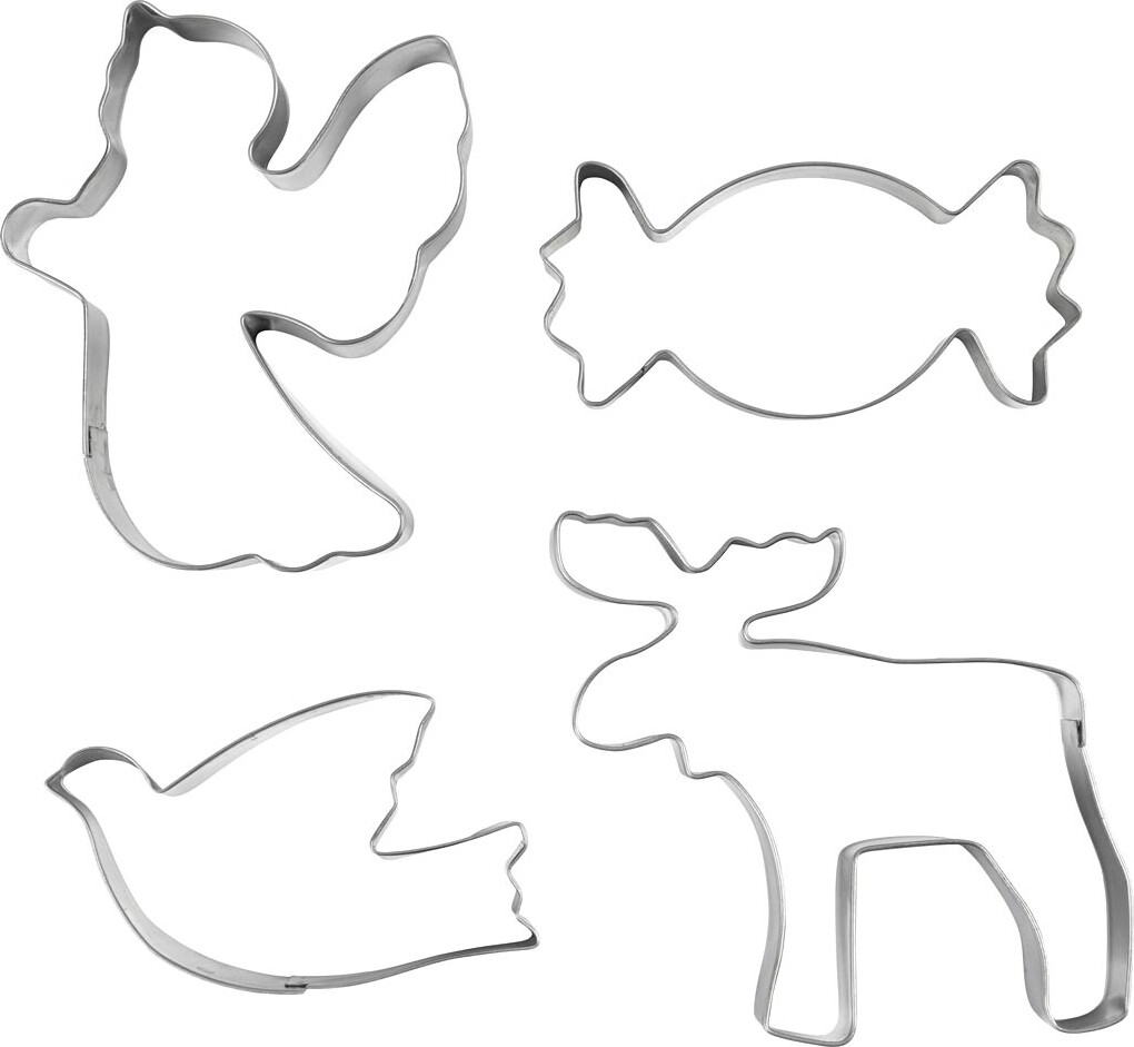 Udstiksforme - Engel - Rensdyr - Due - Karamel - H 2 Cm - Str. 4,5-9 Cm - Metal Sølv - 4 Stk.