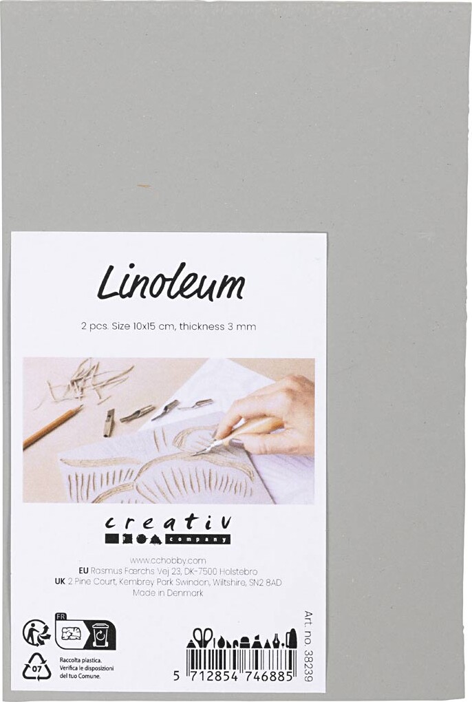 Dette sæt med grå linoleum er ideelt til diverse kreative projekter og gør-det-selv-opgaver. Med mål på 10x15 cm og en tykkelse på 3 mm, tilbyder disse linoleumplader en robust og holdbar løsning til både indendørs og udendørs brug. Uanset om du planlægger at skabe unikke kunstværker, dekorative elementer eller praktiske løsninger i dit hjem, vil denne linoleum være et fremragende valg. Linoleum er kendt for sin alsidighed og bæredygtighed, hvilket gør det til et populært valg blandt både hobbyister og professionelle. Den grå farve giver et moderne og stilrent udtryk, der nemt kan kombineres med andre materialer og farver i dit hjem. Med to plader i pakken kan du eksperimentere med forskellige designs og teknikker, hvad enten du vil skære, male eller lime. Linoleum er nemt at arbejde med og giver dig mulighed for at slippe din kreativitet løs. Uanset om du laver en ny borddækning, kreative indretningselementer eller skaber noget helt unikt, så er dette produkt det perfekte valg for dig. Giv dit hjem et personligt præg med disse alsidige linoleumplader.