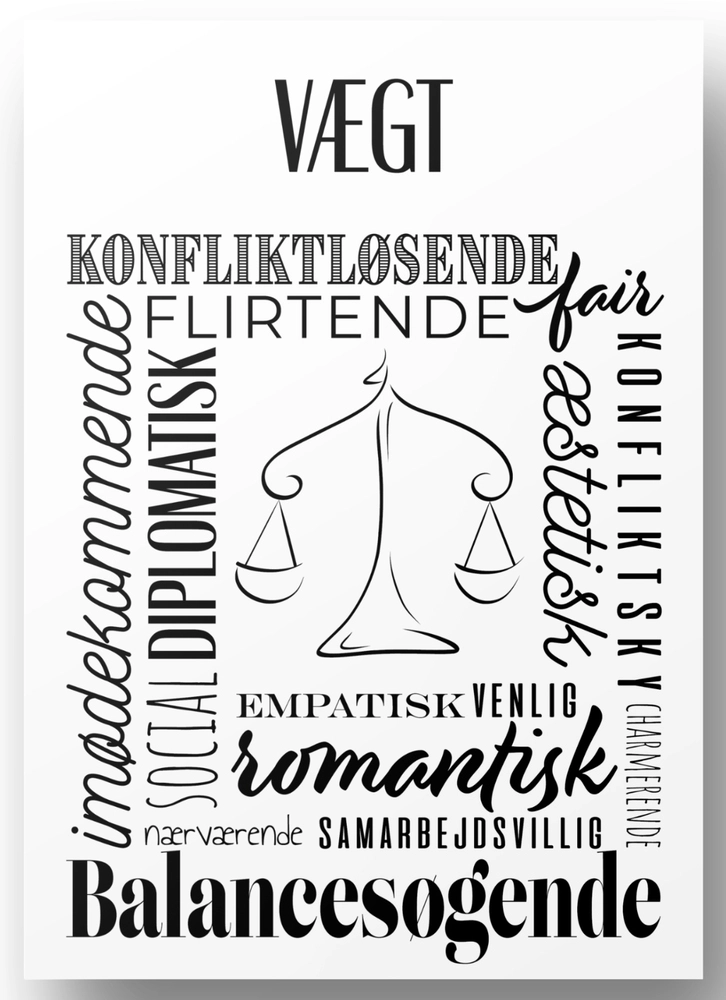 Plakat A4 Vægt Håndtegnet Stjernetegns Citat