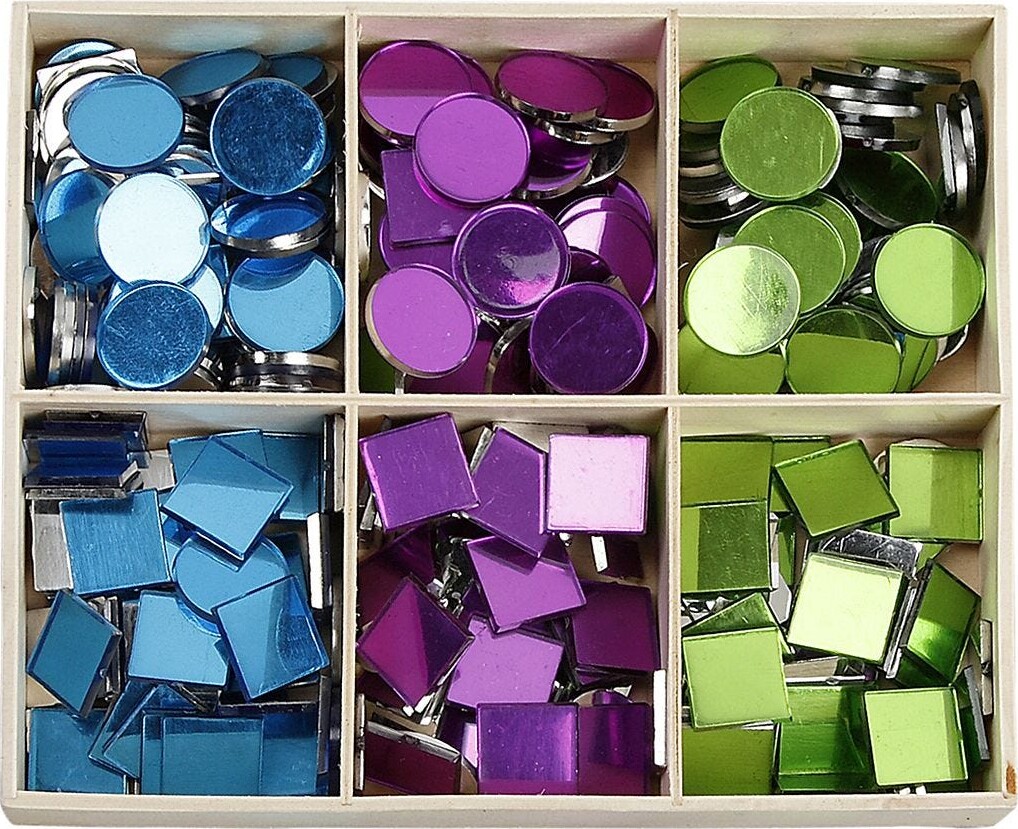 Vores spejlmosaik i størrelse 15 mm og tykkelse 2 mm er det perfekte valg til dine kreative projekter. Med 300 stk. i pakken kan du skabe fantastiske dekorationer til både hjemmet og festlige anledninger. Spejlmosaikken reflekterer lyset smukt og tilføjer et elegant touch til enhver overflade. Brug dem til at dekorere spejle, lysestager, rammer eller endda til kunstprojekter og scrapbooking. Denne type mosaik er nem at arbejde med og kan tilpasses enhver overflade, hvilket gør den ideel til både nybegyndere og erfarne håndværkere. De små spejlstykker kan også anvendes til at skabe unikke mønstre og designs, der vil imponere dine gæster. Med en tykkelse på kun 2 mm er disse mosaikker lette at håndtere og kan klæbes på de fleste overflader med lim. Uanset om du ønsker at opdatere dit interiør eller lave en personlig gave, vil vores spejlmosaik hjælpe dig med at realisere dine idéer. Giv dit hjem et strejf af glamour med vores alsidige spejlmosaik!