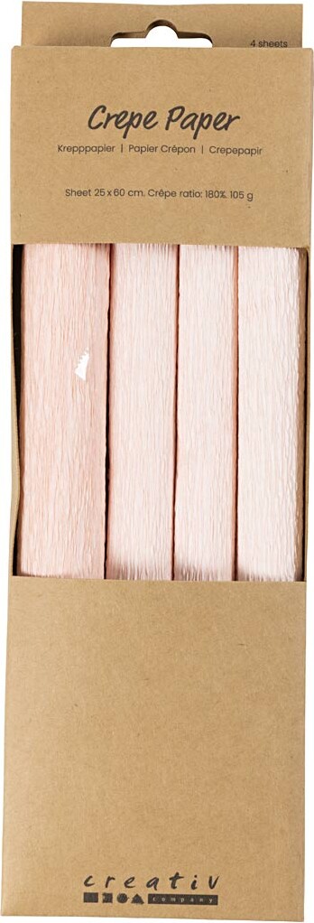 Crepepapir - 25x60 Cm - Stræk/crepe 180% - 105 G - Soft Rosa - 4ark