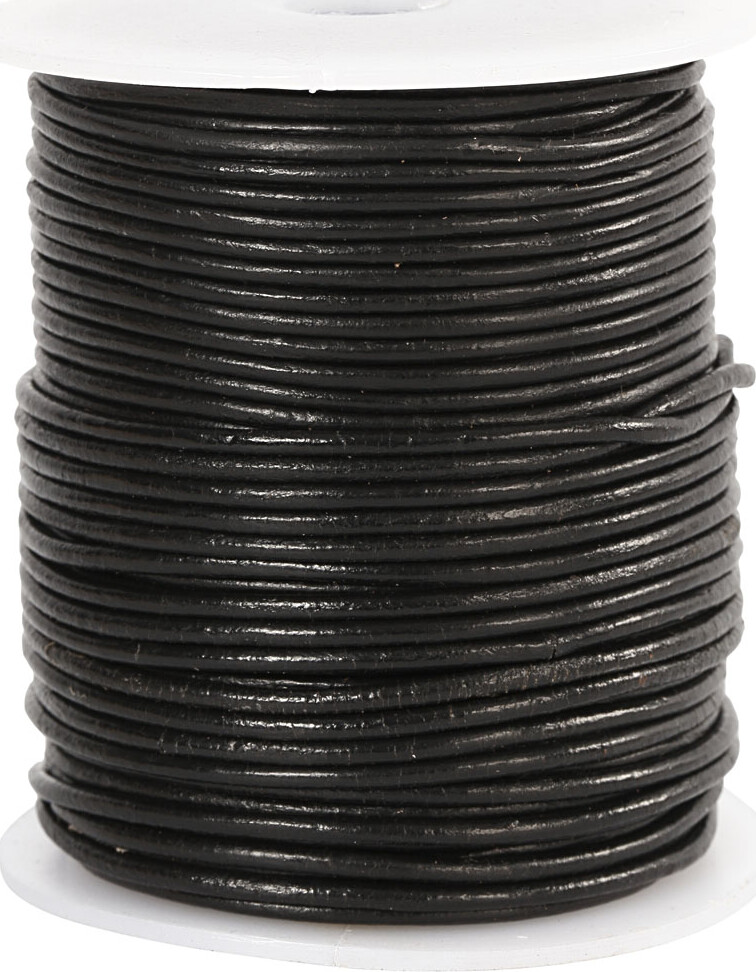 Lædersnor - Tykkelse 2 Mm - Rund - Sort - 50 M