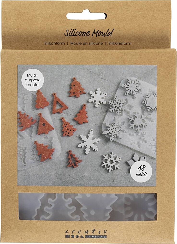Silikoneform - Iskrystaller Og Juletrĉer - H 0,3 Cm - B 3,5+4,7 Cm - Med Hul Til Ophĉng - Mat Transparent - 2 Stk./ 1 Stk.