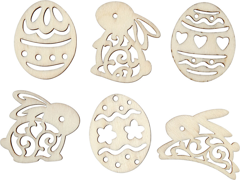 Træpynt - Påskeæg Og Harer - H 40 Mm - Tykkelse 3 Mm - 24 Stk.