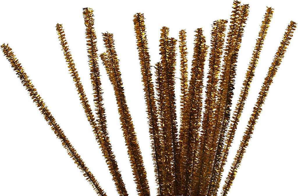 Forvandl dine kreative projekter med Piberensere i glitter guld! Disse fantastiske piberensere måler 30 cm i længden og 6 mm i bredden, hvilket gør dem ideelle til en bred vifte af håndværksprojekter.