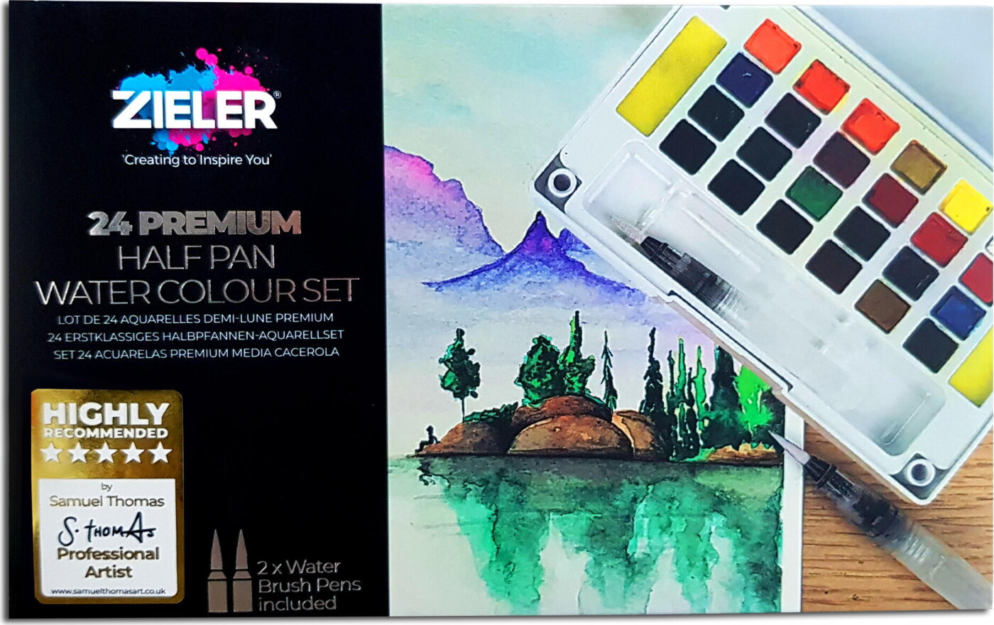 Akvarelfarver Sæt - Premium Half Pan - 24 Farver - Zieler