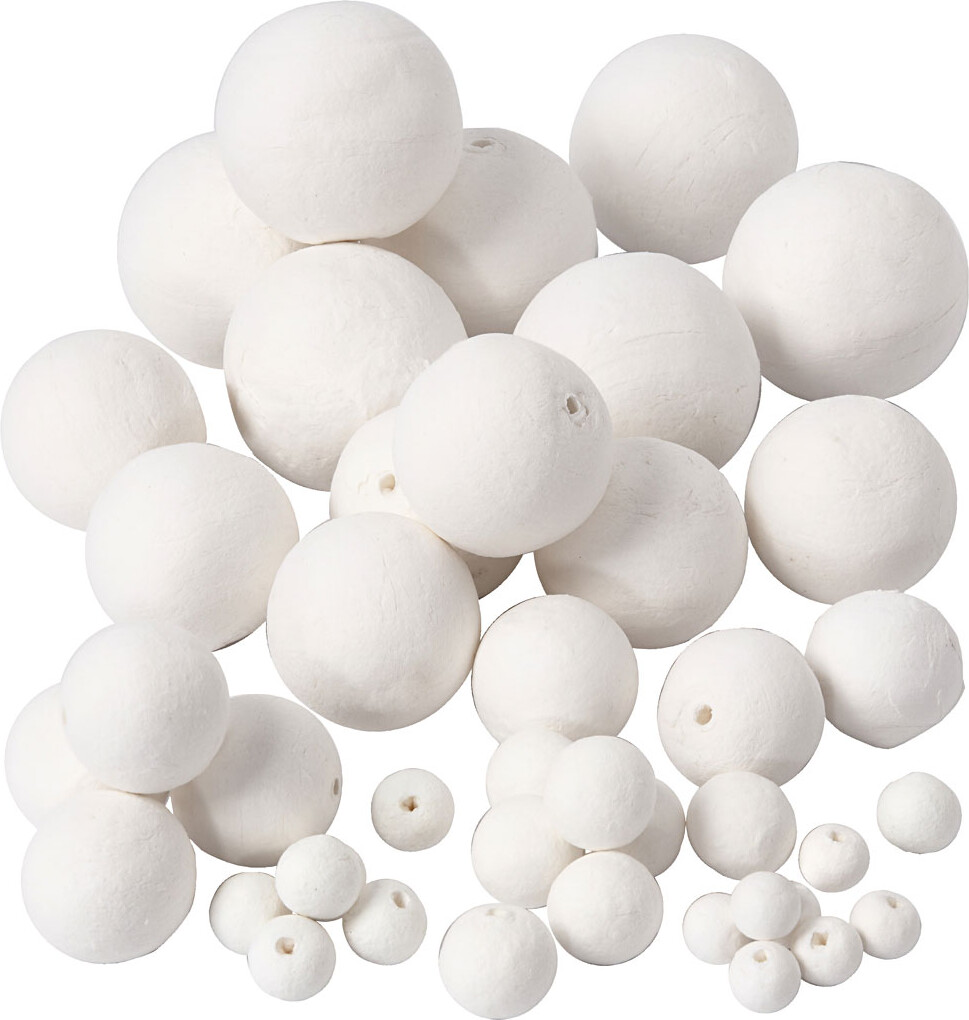 Vatkugler - ø 12+15+20+30+40+50 Mm - Hvid - 42 Stk.