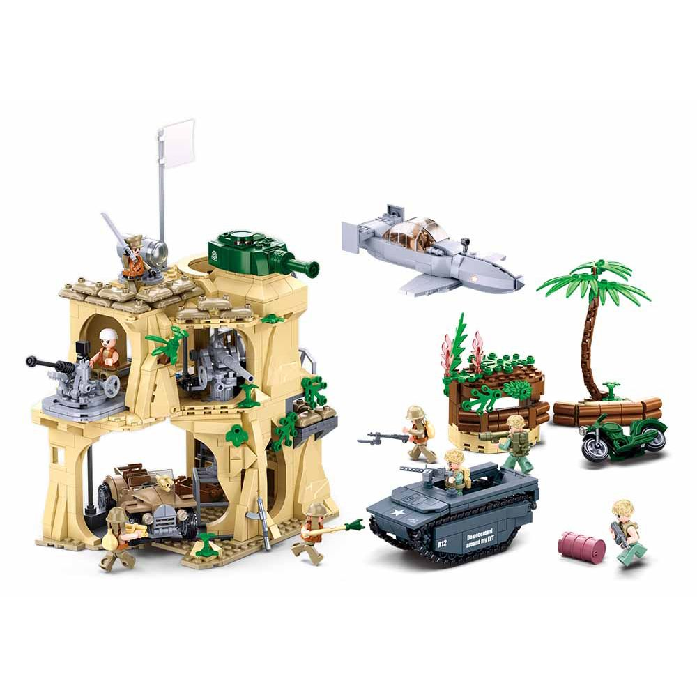 Tag del i historien med Sluban WWII - Slaget om Iwo Jima, et imponerende byggesæt bestående af 1027 dele. Dette sæt giver dig mulighed for at genskabe en af de mest ikoniske begivenheder fra Anden Verdenskrig og udforske din kreativitet samtidig.