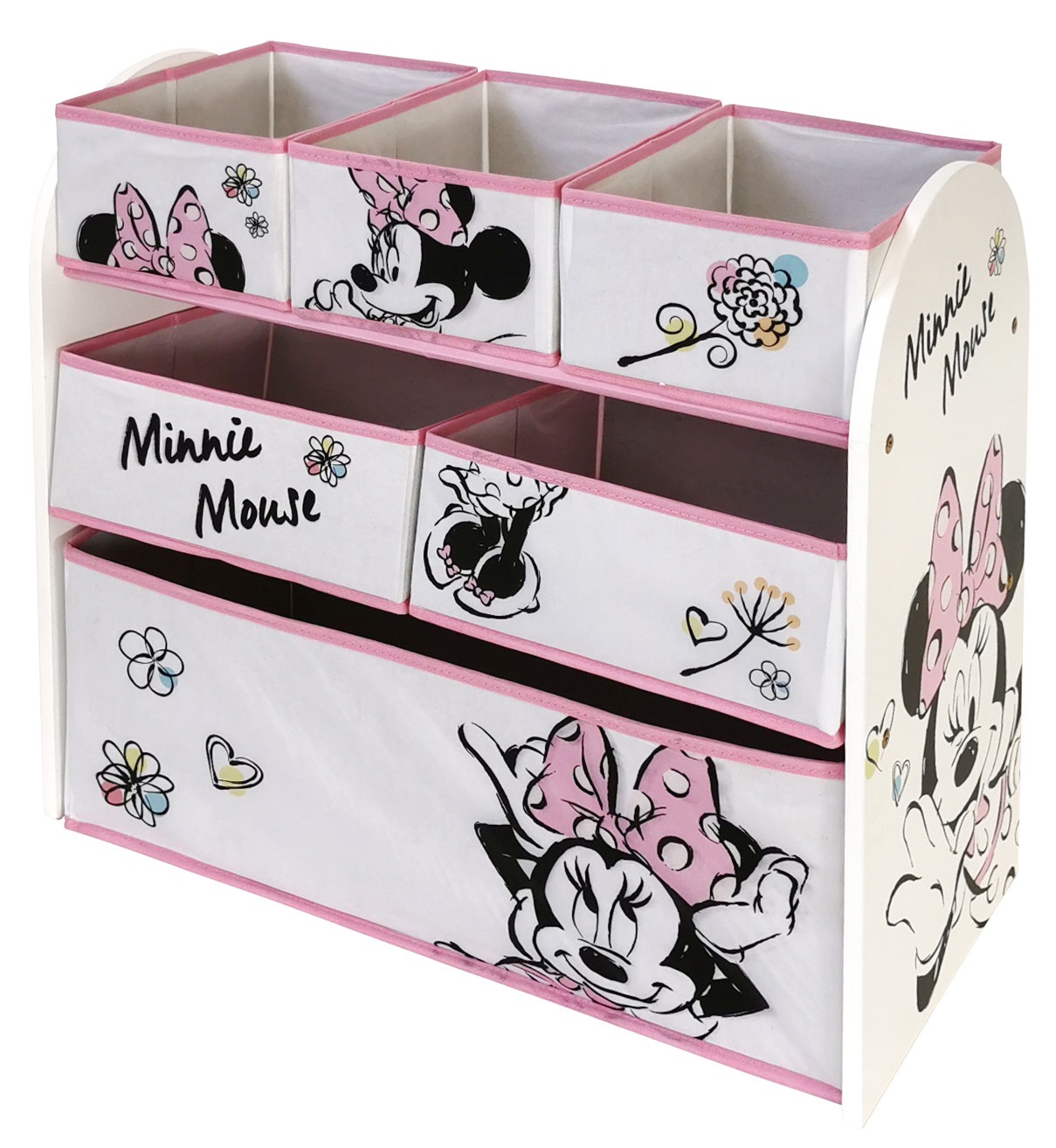 Minnie Mouse Træ Reol med 6 kurve er den perfekte opbevaringsløsning til dit barns værelse. Denne charmerende reol kombinerer funktionalitet med et legende design, der vil glæde enhver Minnie Mouse fan. Den er lavet af holdbart træ, hvilket sikrer en lang levetid og en stabil struktur. De seks farverige kurve giver masser af plads til opbevaring af legetøj, bøger og andre småting, så dit barn kan holde sit værelse pænt og ryddeligt. Hver kurv kan nemt tages ud og ind, hvilket gør det til en leg for børnene at organisere deres ting. Den lyse og venlige farvepalet gør, at reolen nemt kan integreres i ethvert børneværelse, uanset indretning. Reolen er ikke kun praktisk, men også en sjov del af indretningen, der vil inspirere til leg og kreativitet. Med Minnie Mouse som tema bringer den et strejf af magi og glæde ind i rummet. Det er en ideel gave til fødselsdage eller andre specielle lejligheder, der vil blive værdsat af både børn og forældre. Gør opbevaring til en del af leg og læring med denne fantastiske Minnie Mouse træ reol!