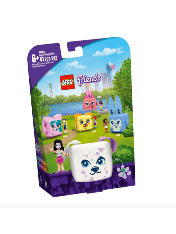 Anbefalet alder 6 år+ Lego Friends Emmas Dalmatinerboks Den søde boks har et ansigt som en hund og “ører” af stof i sideren. Inde i boksen er der legetøj af den populære LEGO Friends Emma, en sød hundefigur i en hemmelig farve og en masse legetøjstilb