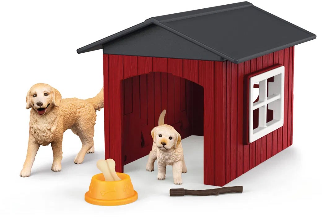 Hundekennel fra Schleich Farm World med 2 søde hunde. Den har et inspirerende, detaljeret design. Perfekt til timevis af fantasifuld leg. - Indeholder: 1 hundehus, 2 golden retrievere, 1 vandskål, 1 knogle, 1 pind. - Detaljeret design. - Udvikler kognitive og finmotoriske færdigheder. - Saml på alle produkterne i serien. - CE-mærket. - Anbefalet alder: Fra 5 år. - Plastik.