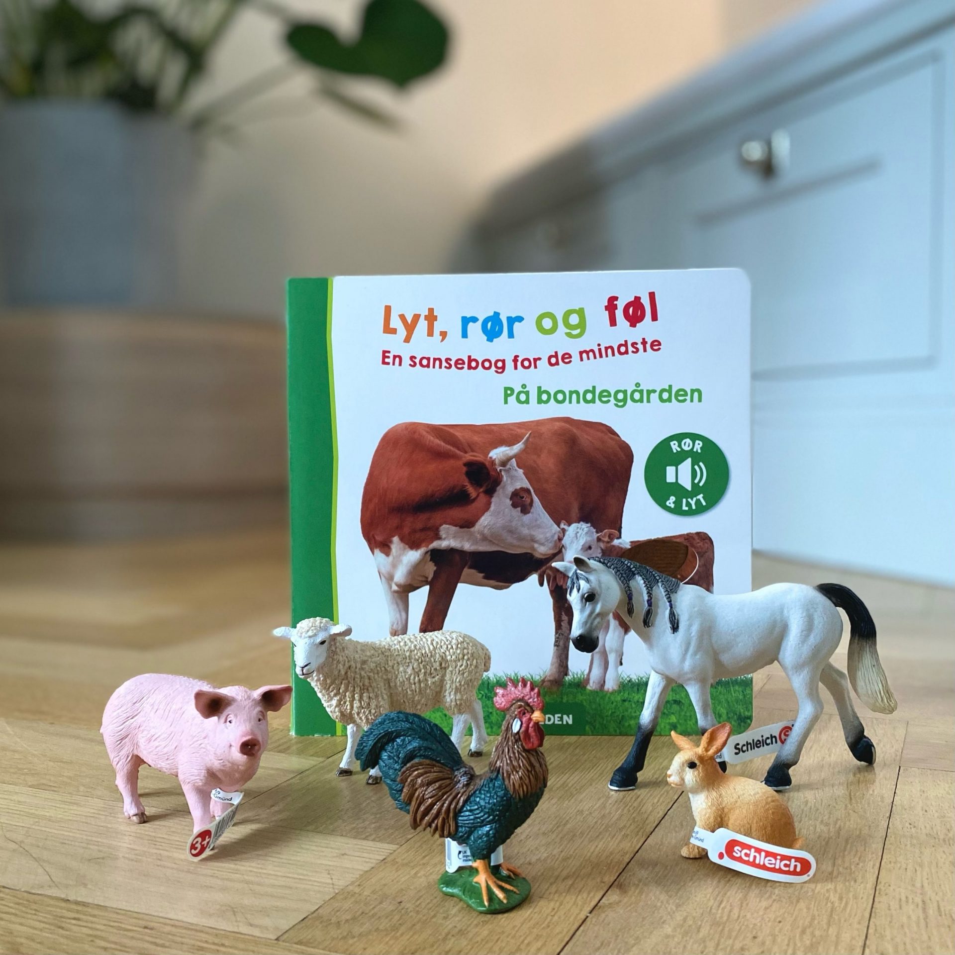 Schleich Bondegårdsdyr bundle 5 Schleich dyr + sansebog med lyd