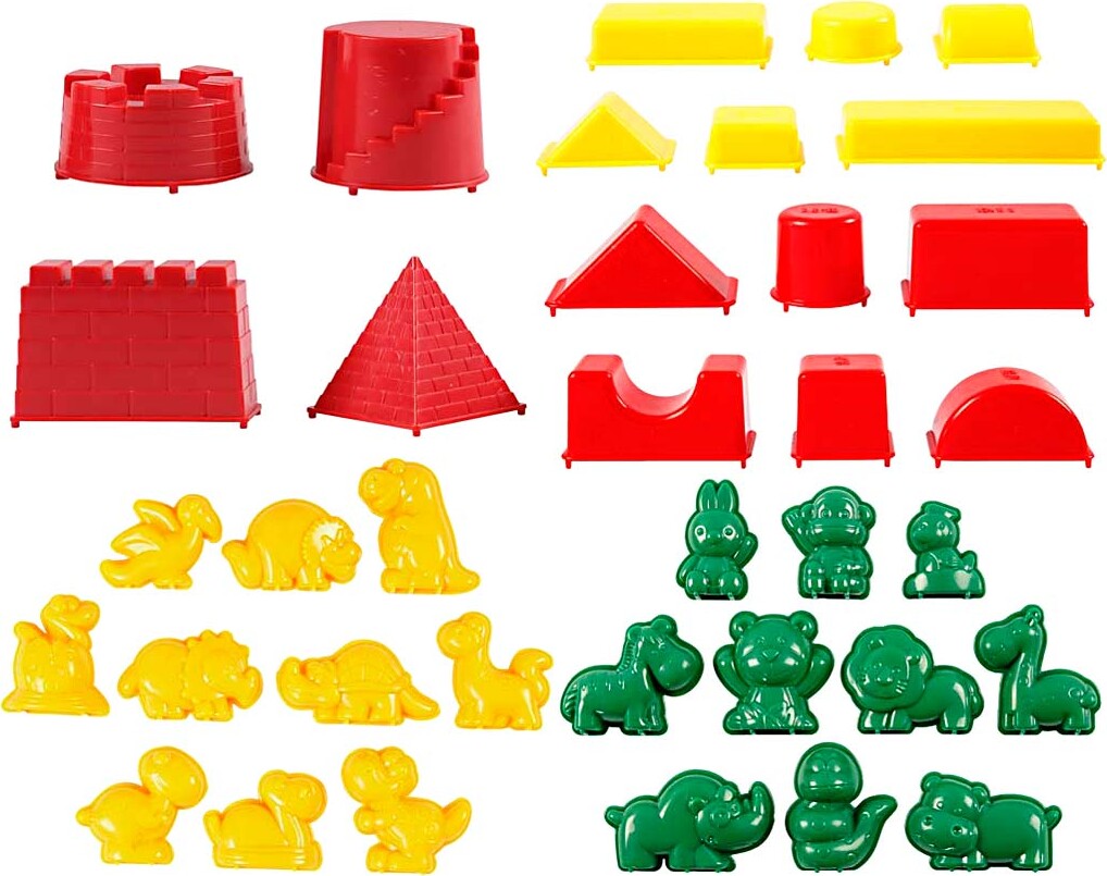 Børn kan lave søde og seje sanddyr, sand-dinoer, sandslotte og andre sandstrukturer med disse fine sandforme! Tag disse sandforme med til stranden eller sandkassen for at gøre det hele lidt mere...