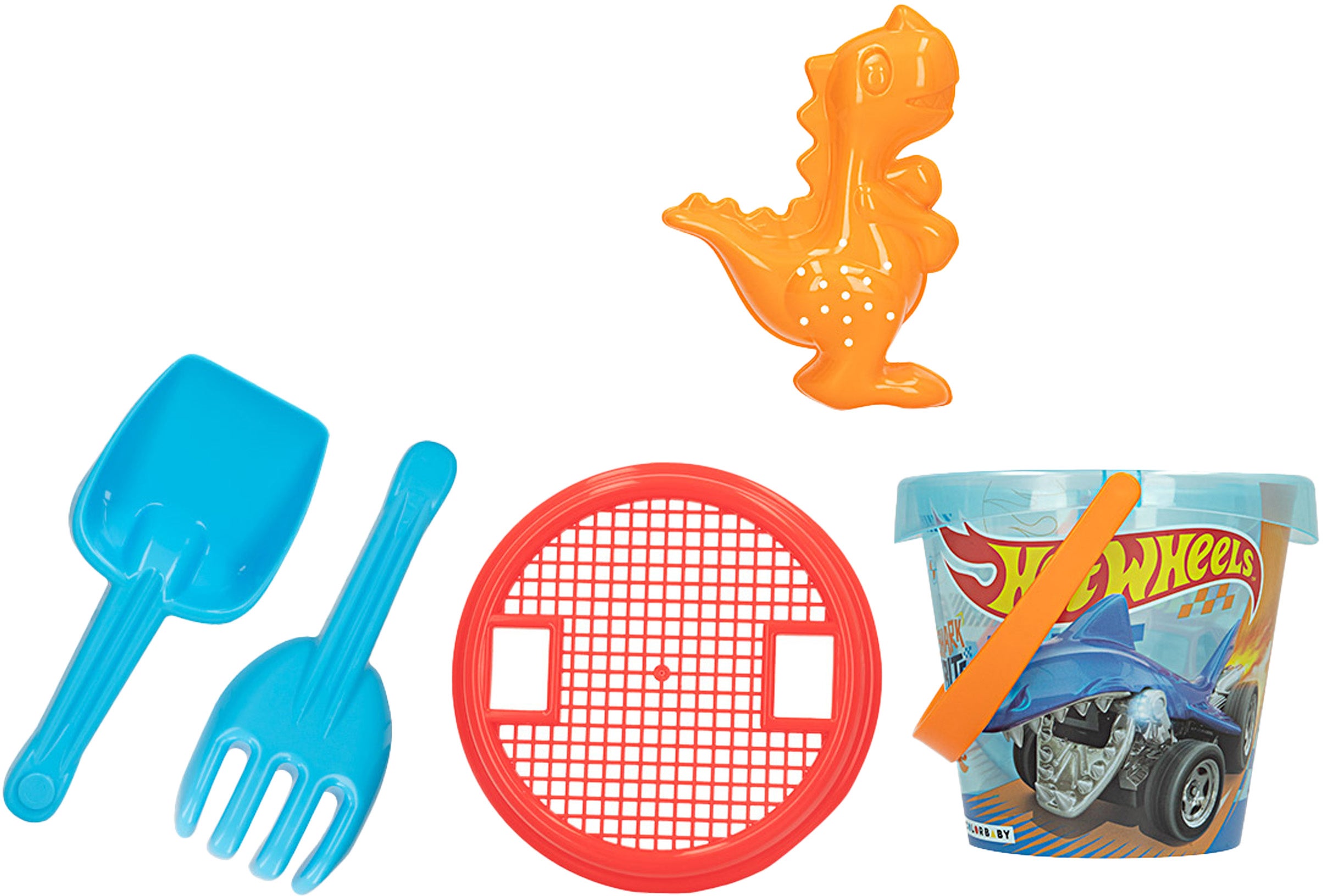Strandsæt fra Hot Wheels med et inspirerende design. Det har en spand og en rød si og andet tilbehør. Perfekt til både pool- og strandliv. - Indeholder: 1 spand, 1 spade, 1 rive, 1 form, 1 si. - 5 dele. - Spandens mål: 14 cm i diameter. - Til leg på stranden eller i sandkassen. - CE-mærket. - Anbefalet alder: Fra 1,5 år. - Plastik.
