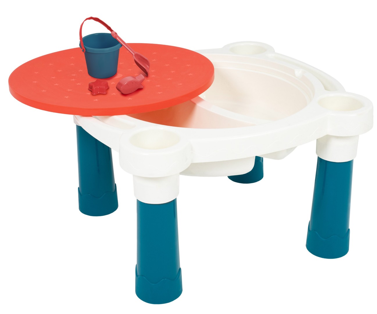 Børnene vil have det sjovt i timevis med dette multianvendelige sand- og vandlegebord! Bordet er stort nok til, at der kan sidde op til 4 børn omkring det, og du kan fylde karret med to rum med sand og vand til rodet leg i timevis! Med spand, spade og and
