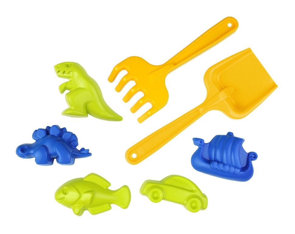 LENA® Sandsæt med skovl og rive, 7 dele. 7 dele. Sæt med 5 små sandforme. T-Rex, Stegosaurus, fisk, bil og vikingeskib. Med skovl og rive. Ideel til små børnehænder. Til børn fra 12 måneder. Pakket i et net, hangtag med produktinformation. FREMSTILLET I E