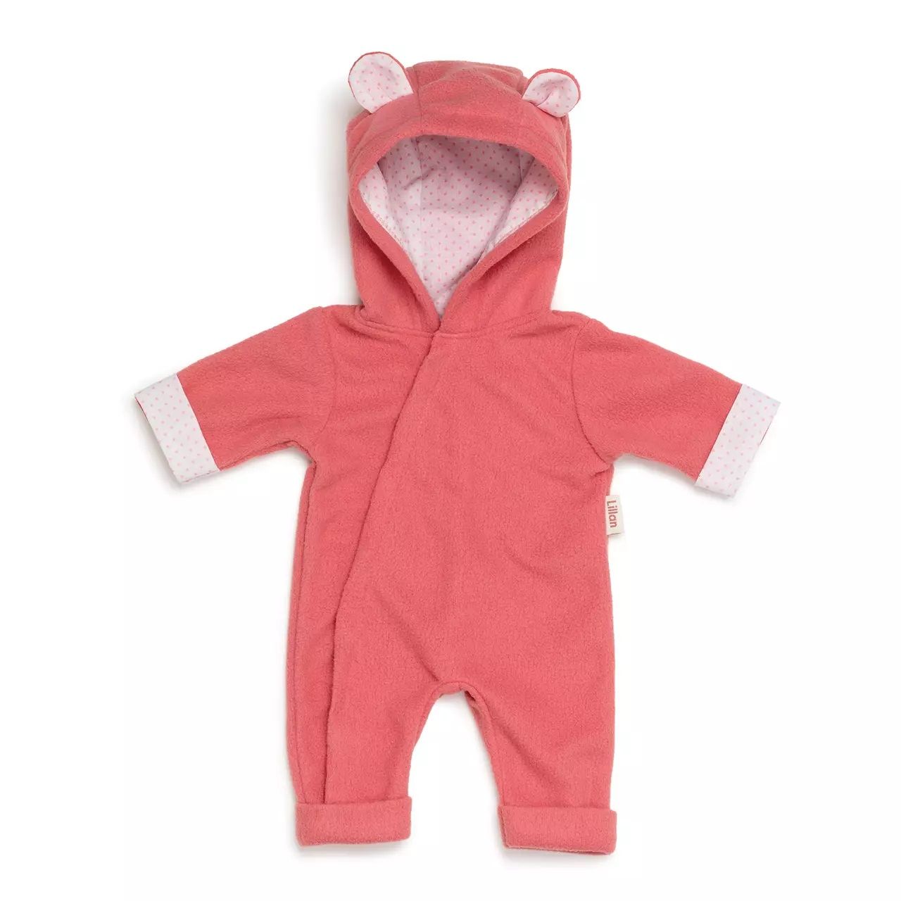 En fin dragt fra Skrållan, der passer til din dukke. Den er fremstillet i blød polyester og har en hætte med søde ører. Dragten passer til dukker op til 42 cm lange. Anbefalet alder: Fra 1 år.