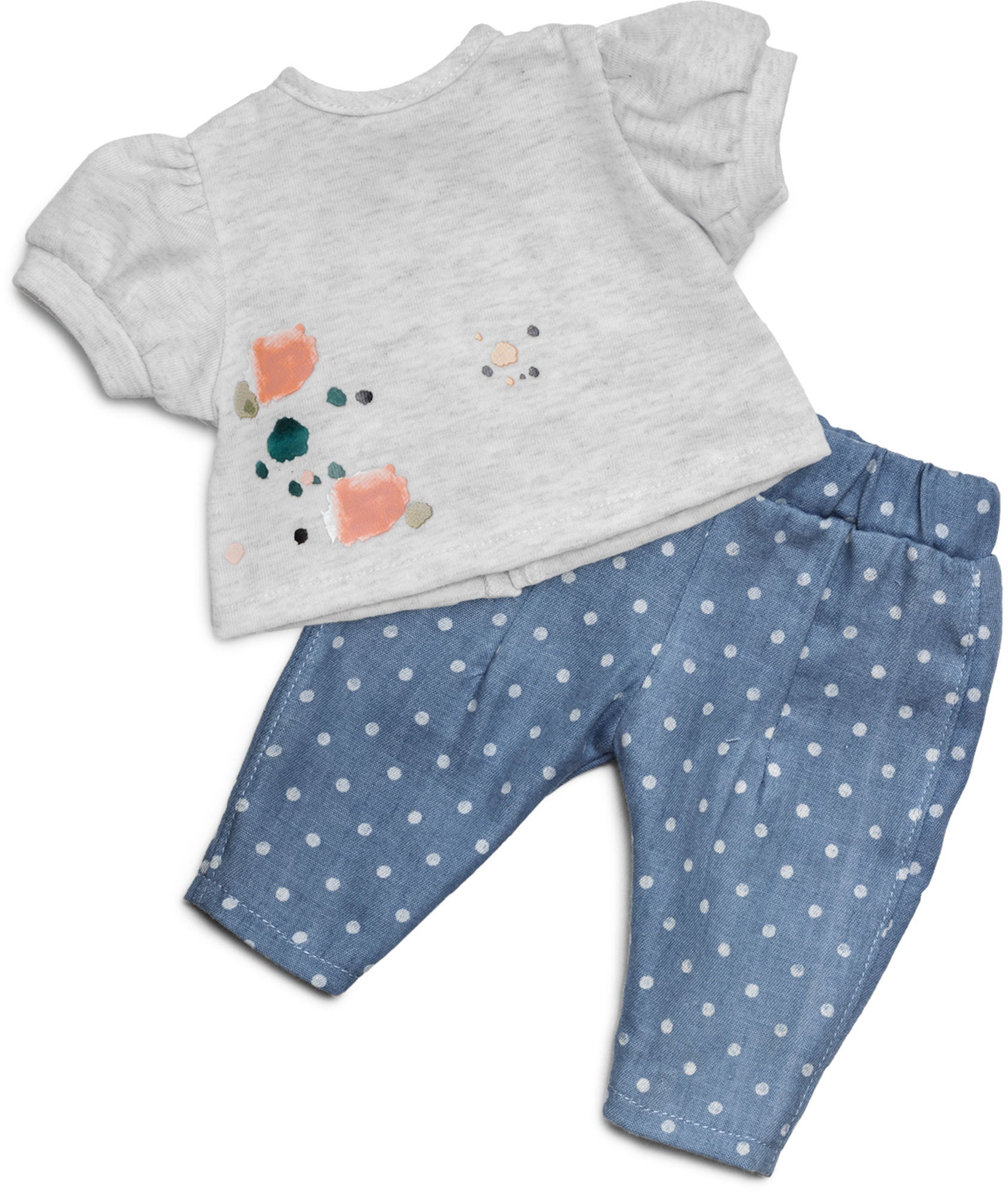 Dette dukkesæt fra Skrållan består af et par jeans og en t-shirt. Sættet passer perfekt til din dukkes hverdagsgarderobe. - Sættet passer i øvrigt til dukker i højden 36 cm. Anbefalet alder: Fra 1 år.