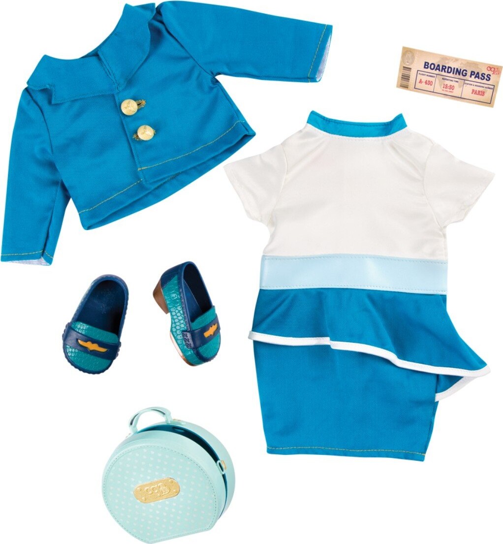 Drømmer din dukke om at rejse verden rundt? Med dette elegante kabinepersonale-outfit fra Our Generation kan det opfyldes.