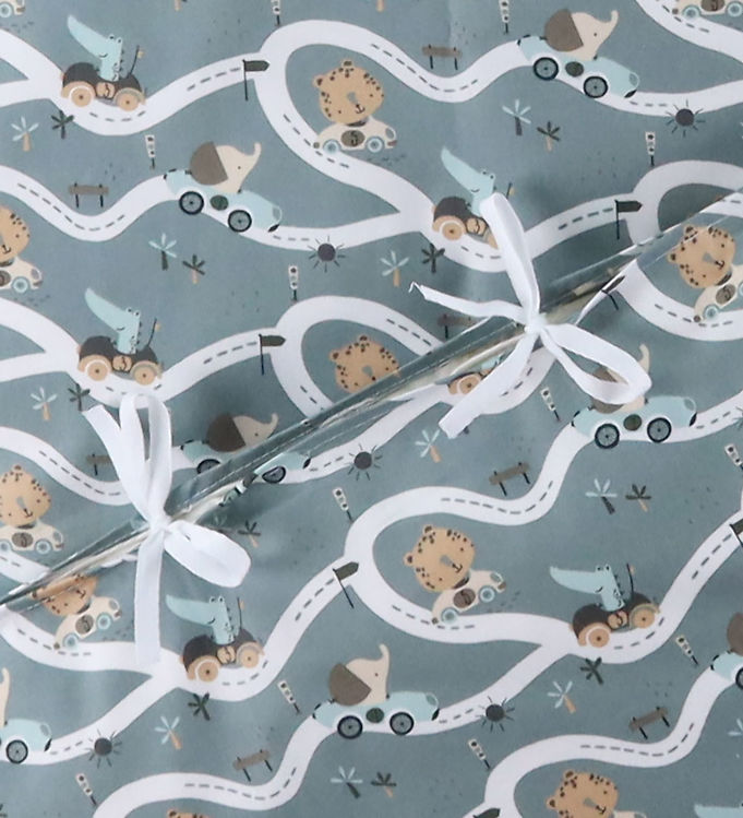 Nørgaard Madsens Sengetøj - Baby - Grå m. Biler på Snoede Veje