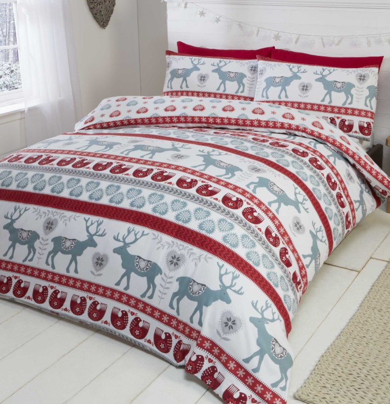 Dette smukke skandinaviske design har både detaljerede mųnstre og motiver, der perfekt indkapsler de nuvęrende vintertrends. Scandi har også et hyggeligt design med hjerter på bagsiden. Super blųdt og hyggeligt bųrstet bomuld. Dobbelt dynebetręk og 2 pude