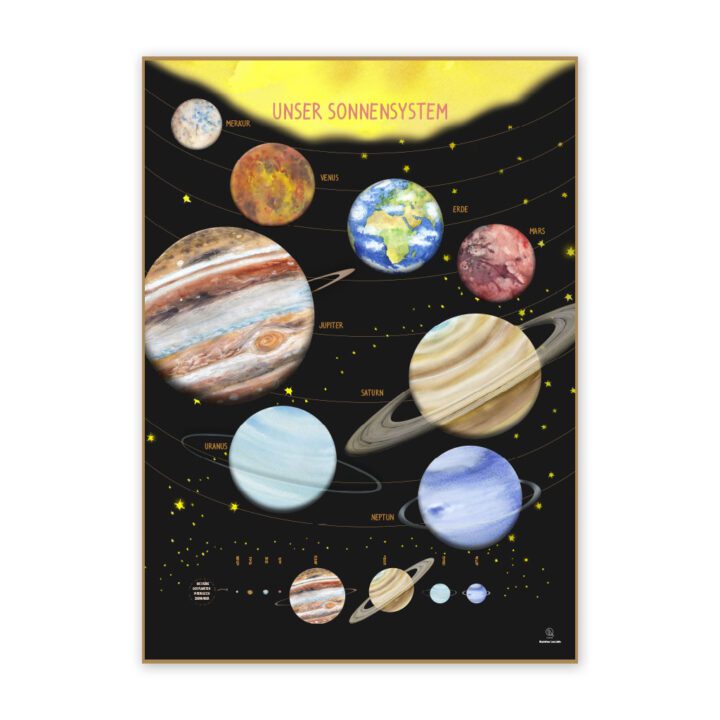 Er dit barn fascineret af rummet og vores solsystem? Eller vil du gerne inspirere dit barn? Her er en flot plakat med planeterne, deres navne og størrelsesforhold tegnet af dygtige Lea Letén, hvis illustrationer du måske kan genkende fra fx Villads fra Valby, en række sangbøger, bøger med børneyoga og bøgerne om Pelle og Ronja.