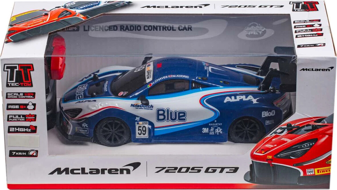 Her får du masser af lækre detaljer i denne fjernstyrede 1:24 McLaren 720S GT3 fra Tec-Toy. Modellen er næsten 20cm lang, og leveres med den nyeste type af fjernstyringer, nemlig 2,4GHz, som gør...