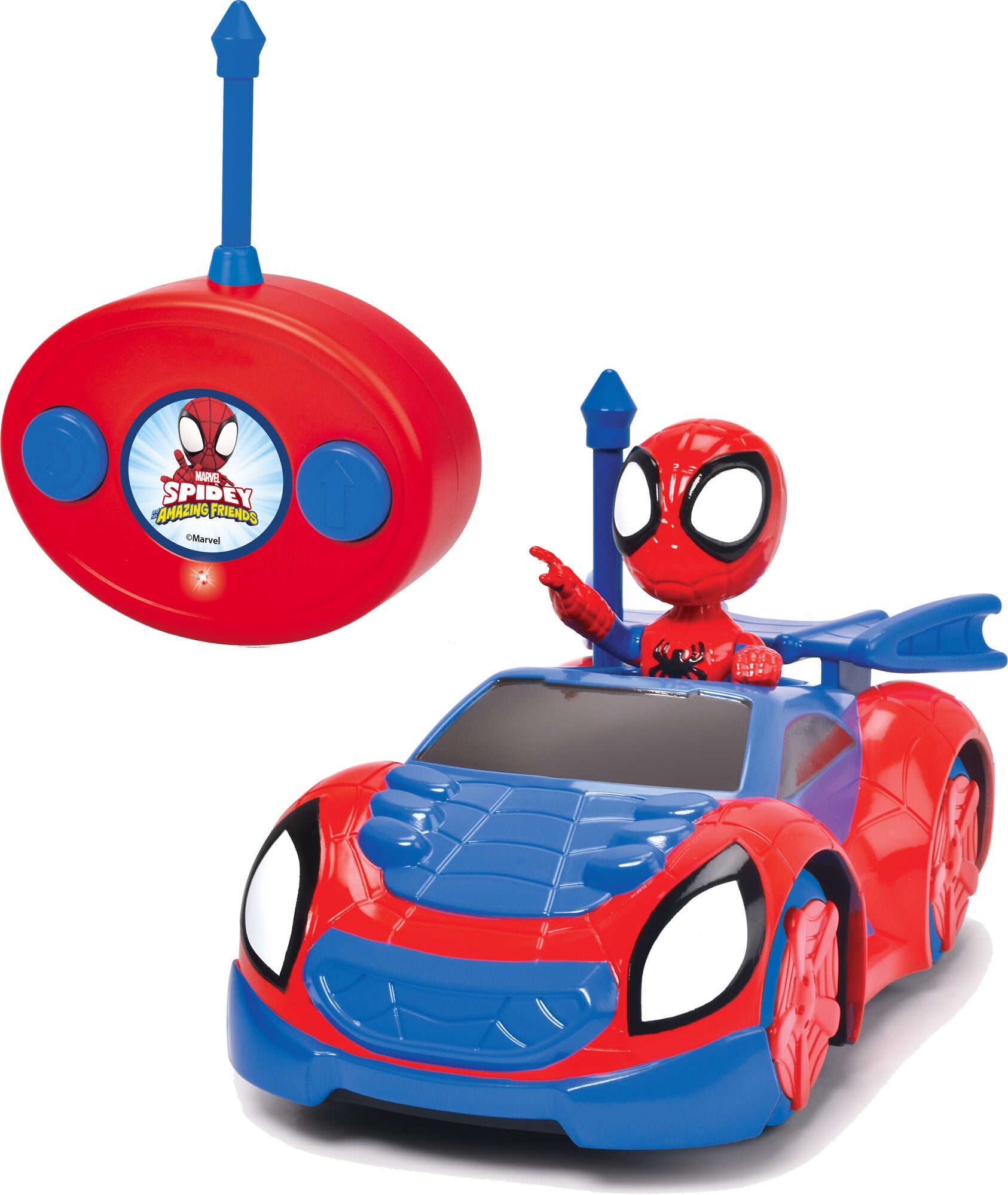 Marvel Spidey fjernstyret bil med en Spider-Man-figur. Den har en kanal og en 27 MHz fjernbetjening til små hænder. Perfekt som de yngre børns første fjernstyrede bil. CE-mærket. Anbefalet alder: Fra 3 år.