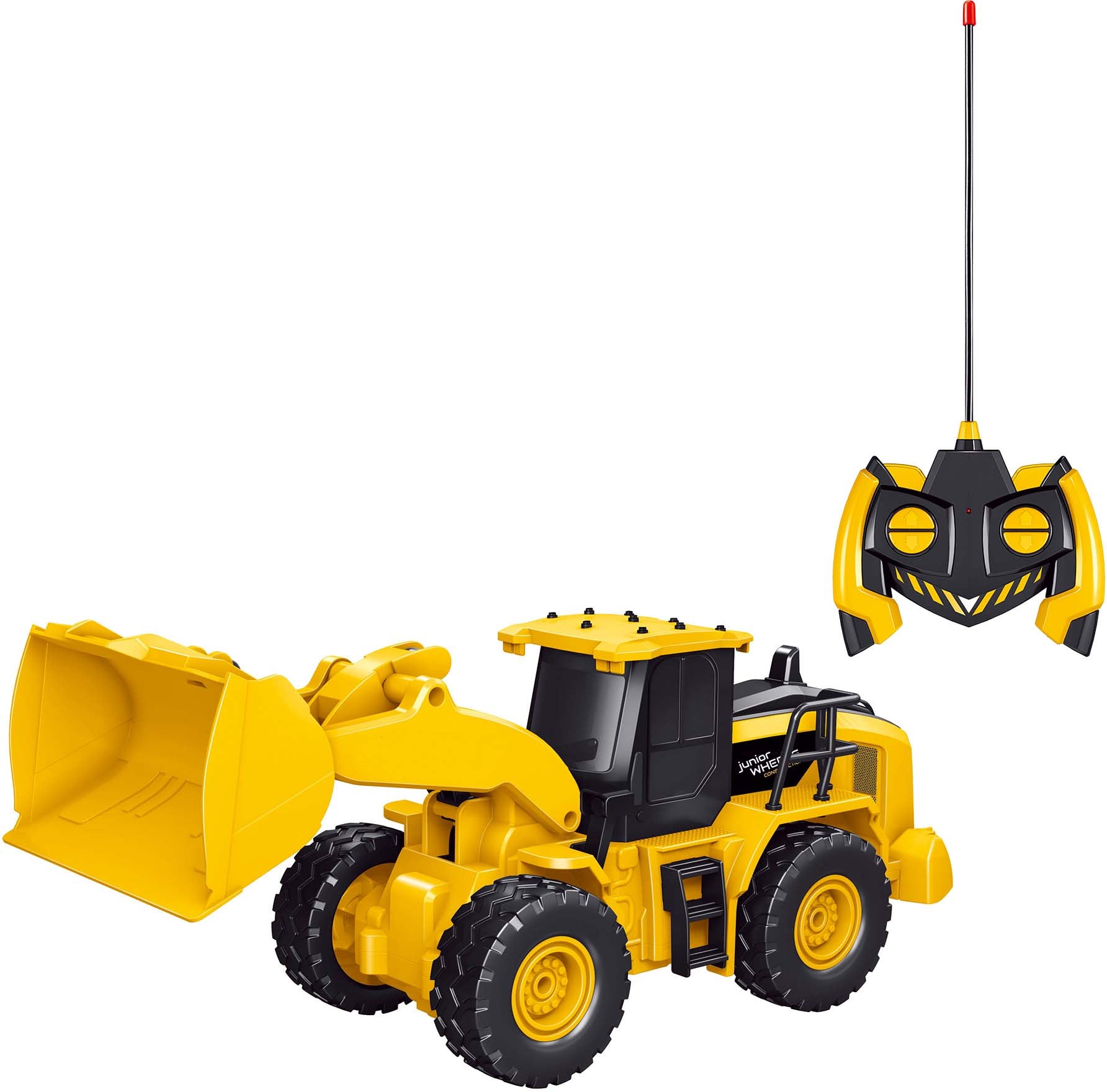 Fjernstyret hjullaster fra Junior Wheels med seje lyseffekter. Perfekt til mange timers sjov. - Indeholder: 1 fjernstyret hjullaster, 1 fjernbetjening. - Lyseffekter. - Bevægelige dele. - Terrænhjul. - Realistisk design. - USB-kabel medfølger. - Batterier til fjernbetjening medfølger ikke. - Velegnet til både indendørs og udendørs brug. - CE-mærket. - Anbefalet alder: Fra 6 år. - ABS-plastik. - Batterier medfølger ikke. - Batterier medfølger.