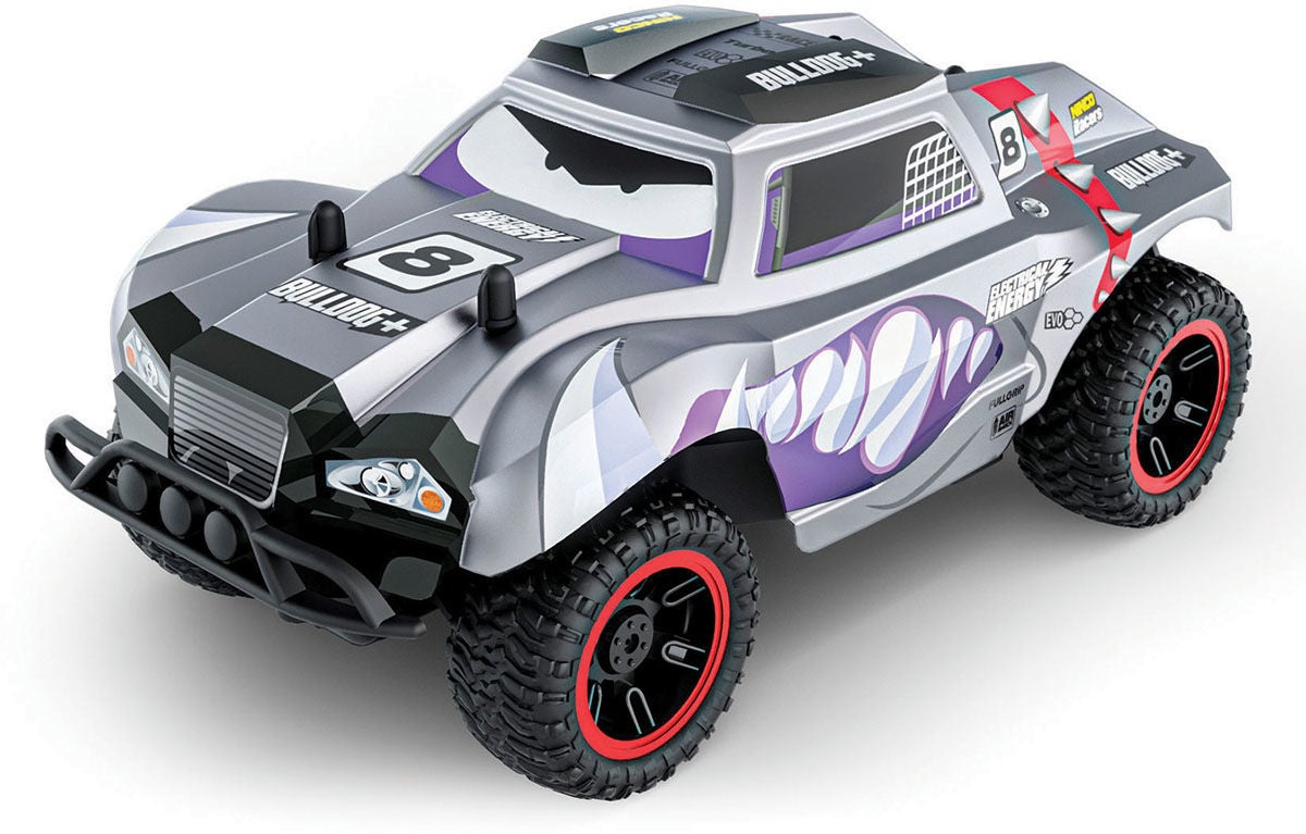 Ninco Bulldog er en sej, fjernstyret bil. Denne monster truck i skala 1 til 24 har en effektiv drejeevne og 2,4 Ghz-teknologi, der muliggør ræs med flere spillere samtidig. En71-certificeret. Anbefalet alder: Fra 6 år