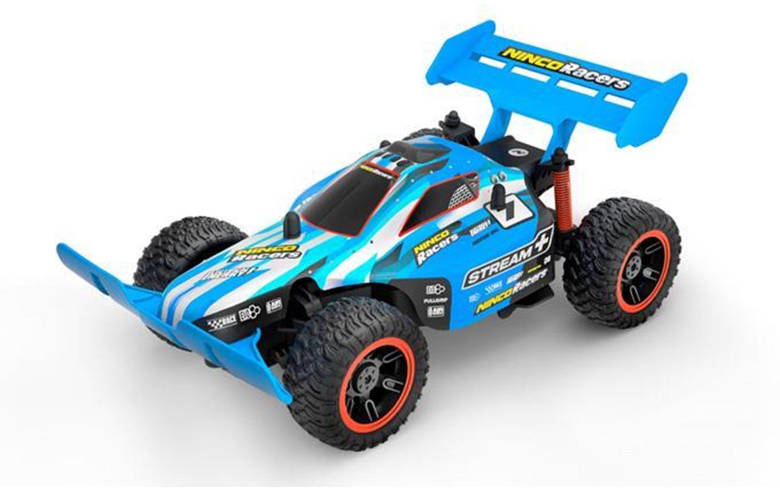 Fjernstyret bil fra Ninco med et stort hjul og fine detaljer. Perfekt til fartfyldte eventyr. - Indeholder: 1 fjernstyret bil, 1 fjernbetjening. - Detaljeret design. - Med fjernkontrollen kan du styre bilen fremad/bagud og til venstre/højre. - Lys- og lydeffekter. - Maksimal hastighed: 12km/t. - Rækkevidde på op til 15 meter. - Affjedring på alle hjul. - Fjernbetjening 2,4 GHz. - CE-mærket. - Anbefalet alder: Fra 6 år. - Plastik. - Batterier medfølger.