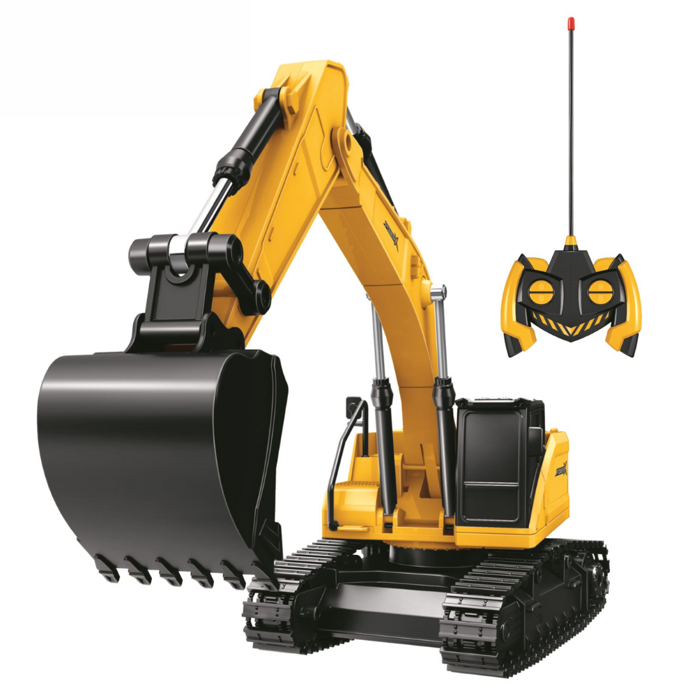 Fin gravemaskine med fjernbetjening, så børn (og andre med begejstring for fjernstyrede maskiner) kan opleve at styre en gravko og flytte rundt på jord eller sand. Med lydeffekter, køre-, grave- og skubbefunktion.Tåler at blive leget med udendørs, men tag den med ind efter brug.40 MHz. Bruger 2 AA-batterier som IKKE følger med.