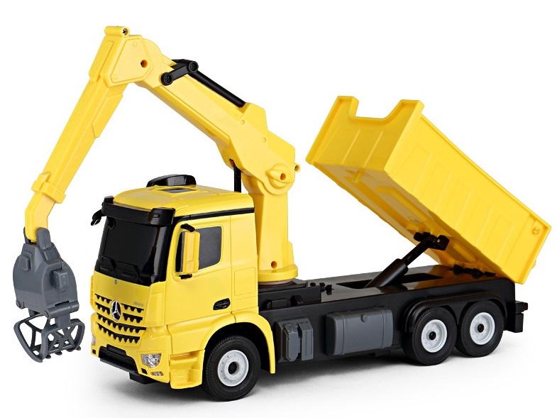 Mercedes-Benz Arocs Fjernstyret Lastbil med kran 2.4G, Gul